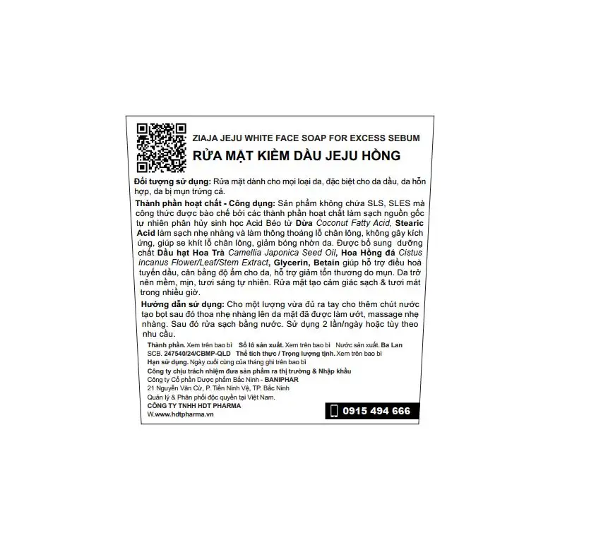 | Thành phần hoạt chất – Công dụng: | Sản phẩm không chứa SLS, SLES mà công thức được bào chế bởi các thành phần hoạt chất làm sạch nguồn gốc tự nhiên phân hủy sinh học Acid Béo từ Dừa Coconut Fatty Acid, Stearic Acid làm sạch nhẹ nhàng và làm thông thoáng lỗ chân lông, không gây kích ứng, giúp se khít lỗ chân lông, giảm bóng nhờn da. Được bổ sung dưỡng chất Dầu hạt Hoa Trà Camellia Japonica Seed Oil, Hoa Hồng đá Cistus incanus Flower/Leaf/Stem Extract, Glycerin, Betain giúp hỗ trợ điều hoà tuyến dầu, cân bằng độ ẩm cho da, hỗ trợ giảm tổn thương do mụn. Da trở nên mềm, mịn, tươi sáng tự nhiên. Rửa mặt tạo cảm giác sạch & tươi mát trong nhiều giờ. |